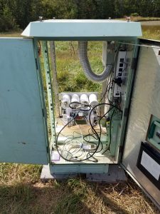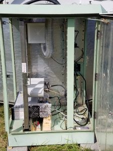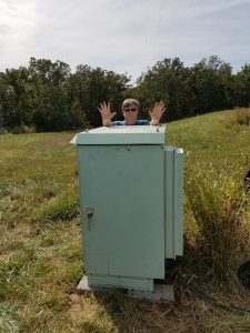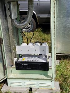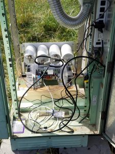 With the help of Allan Sieker (AD0FT), we did final power and antenna wiring in the cabinet for the Belle Repeater.  We then installed the repeater, its controller and duplexer and were pleasantly greeted with a working repeater system.  I then contacted Jim Cleveland (KD0HXG) who was at work in Jefferson City and we had our first real QSO on the machine.